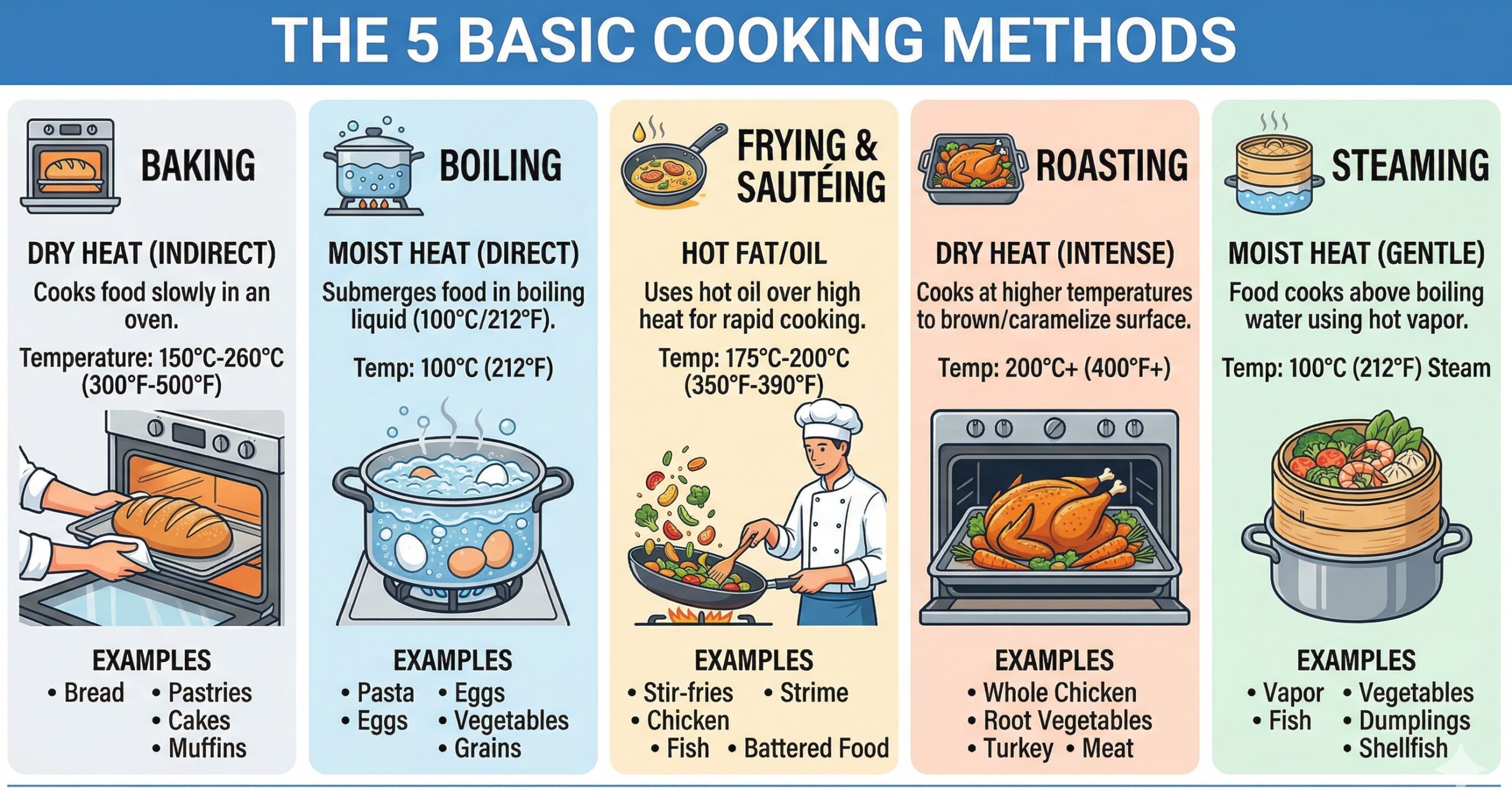 While the culinary world has dozens of specific techniques, they can generally be boiled down to five fundamental cooking methods.…